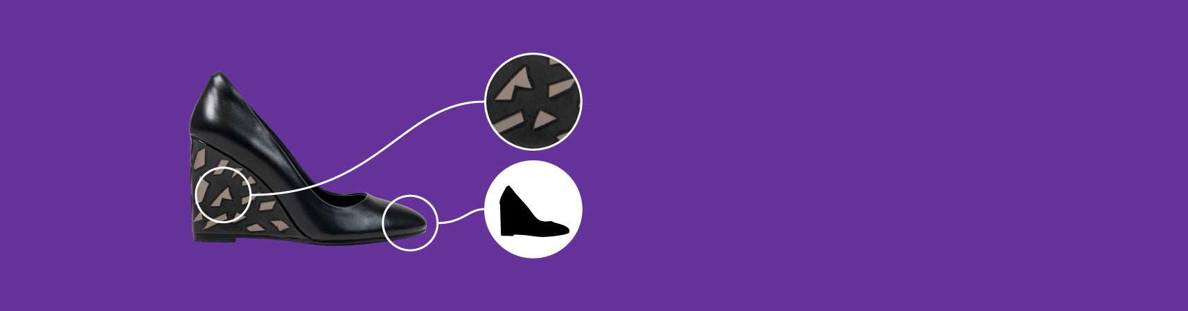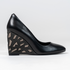 Welcome to your new power shoes. Classic black pumps in the front, these beautiful leather wedges will work with any formal outfit. But turn around, and the illusion of shattered glass from the heel reminds every woman that she owns the room.