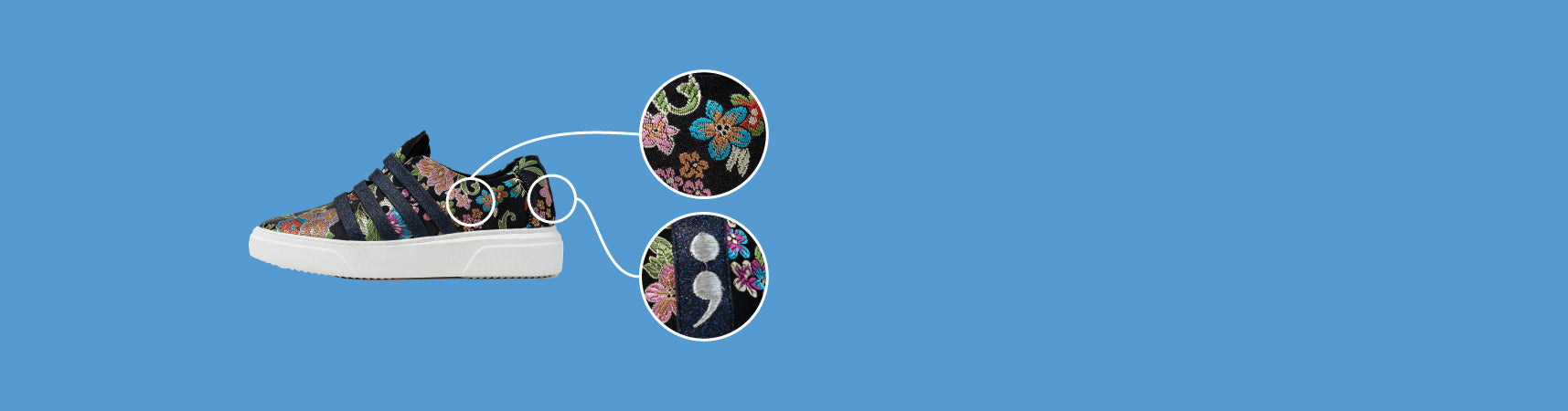 This sneaker is for all the resilient people that have had a difficult time in their life, but kept writing their life story anyway. The beautiful colors and fabric remind us to appreciate the variety of life, as well as the tenacity of nature.